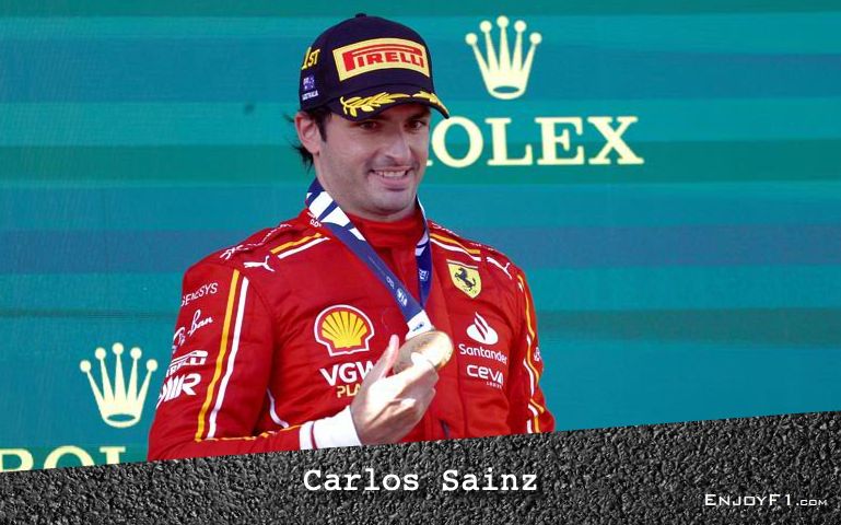 He is set to leave Ferrari at the end of 2024 as Lewis Hamilton joins the team. After missing the 2024 Saudi Arabian Grand Prix due to appendicitis, Sainz scored another Formula One win at the following 2024 Australian Grand Prix starting from second.