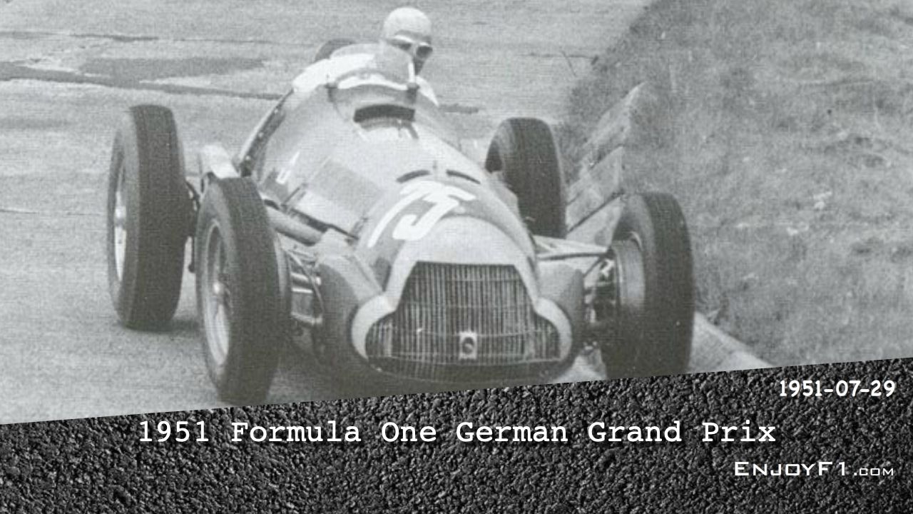 The 1951 German Grand Prix was a Formula One motor race held on 29 July 1951 at the Nürburgring Nordschleife. It was race 6 of 8 in the 1951 Formula One season.