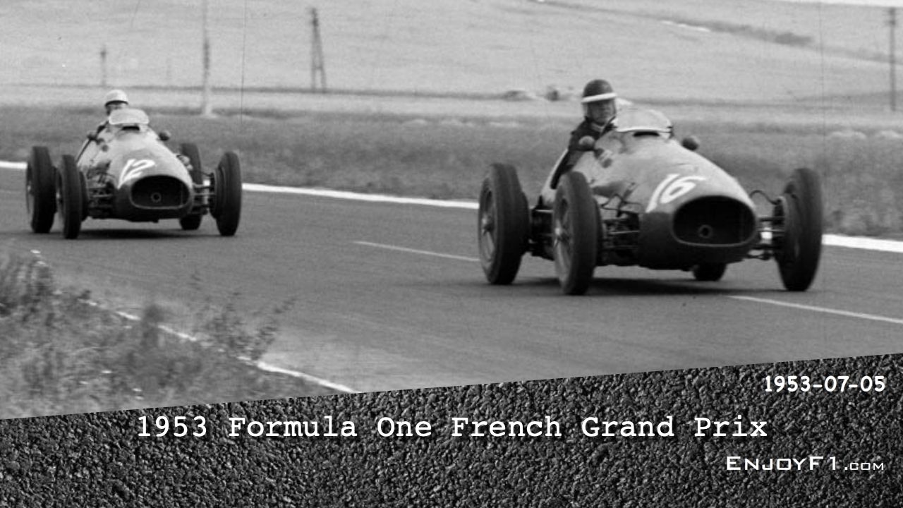 The 1953 French Grand Prix was a Formula One race held on 5 July 1953 at Reims. It was race 5 of 9 in the 1953 Formula One season, which was run to Formula Two rules.