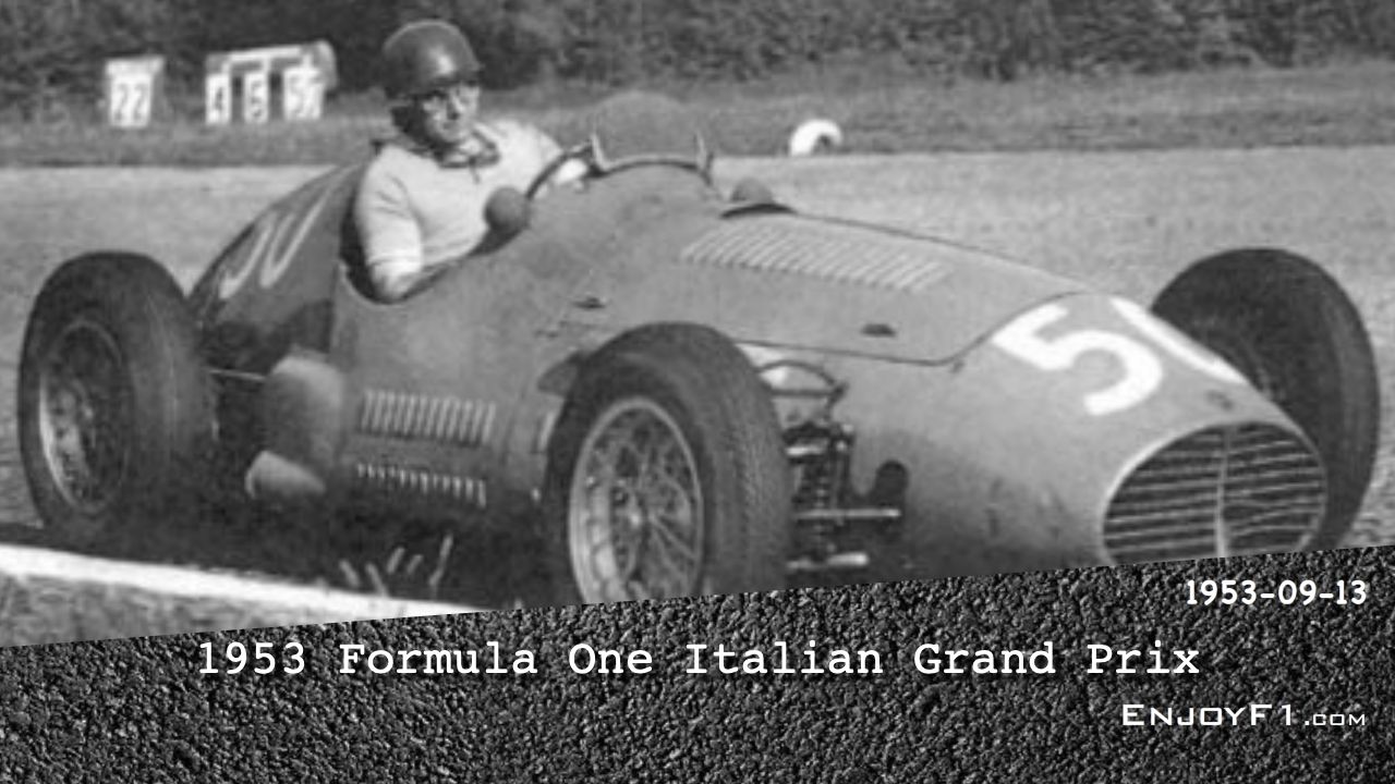 The 1953 Italian Grand Prix was a Formula One race held on 13 September 1953 at Monza. It was the ninth and final race in the 1953 Formula One season, which was run to Formula Two rules.
