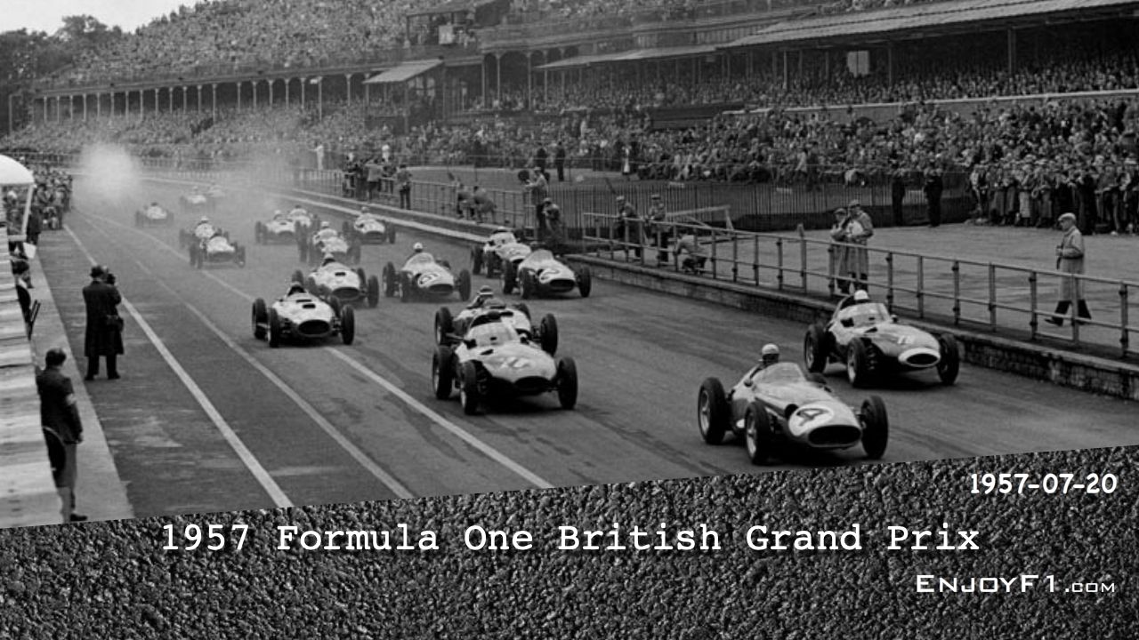 The British Grand Prix was held at the Aintree circuit in Liverpool as opposed to being held at the Silverstone circuit between London and Birmingham the previous year. The Aintree circuit was located in the middle of the horse-racing course where the famous Grand National was held. Both Vanwall drivers missed the French Grand Prix, and were back in action for their home race. This was to be a landmark race for British motorsports. At the start of the race, Behra took off into the lead with Moss in hot pursuit and it was the Englishman who emerged ahead at the end of the lap, to the delight of the partisan crowd. Brooks was third with Hawthorn fourth and Collins fifth. There were four British drivers in the top five positions. Then came Schell, Musso and Fangio. Moss was able to build up his lead but then the car began to sound rough and he pitted. Behra took the lead with Brooks behind him but the second Vanwall driver was soon called into the pits to give his car to Moss who re-joined in ninth position. He began to work his way through the field. Behra remained ahead with Hawthorn unable to challenge him. Then came Lewis-Evans and Collins. Moss was quickly back up to fifth. The field was thinned out by a series of mechanical failures including Fangio and Collins. Moss caught Lewis-Evans but then on lap 69 the whole race changed when Behra's clutch exploded. Hawthorn ran over some of the wreckage and suffered a puncture. Lewis-Evans took the lead but was passed almost immediately by Moss. The dream of a Vanwall 1–2 was punctured when Lewis-Evans suffered a broken throttle linkage which dropped him to seventh place. Moss duly won the race, claiming the first World Championship victory for a British car. Musso was second with Hawthorn third.