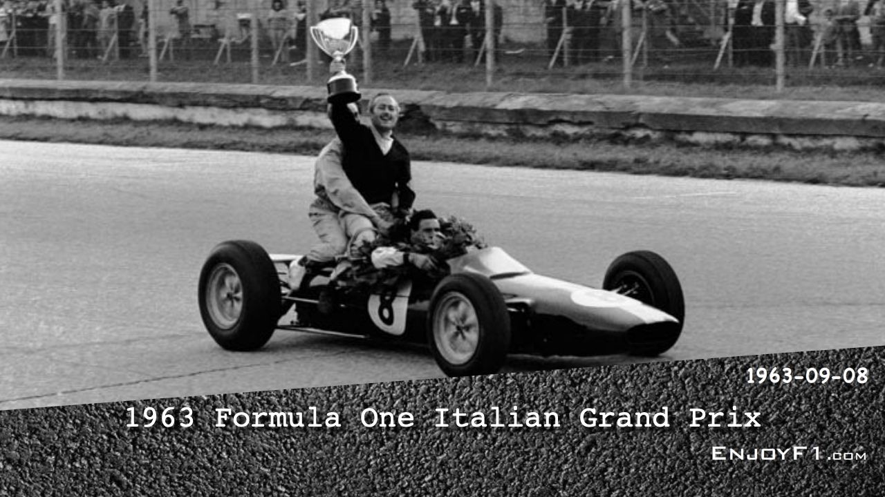 The 1963 Italian Grand Prix was a Formula One motor race held at Monza on 8 September 1963. It was the seventh of ten races in 1963 Formula One season. At this race, Scottish driver Jim Clark clinched the World Championship crown with three races to go, the first time anyone had done so. Lotus-Climax also won the Constructors' Championship.