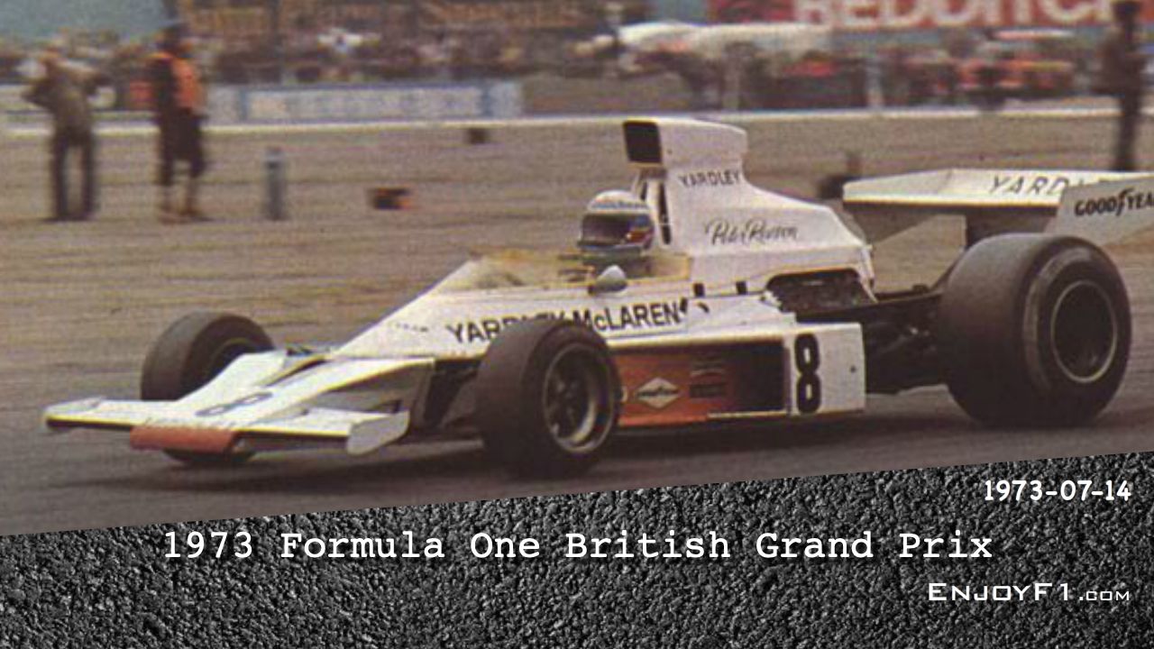 The 1973 British Grand Prix was a Formula One motor race held at Silverstone on 14 July 1973. It was race 9 of 15 in 1973 Formula One season. The race is known for the first lap pile-up, which ultimately caused eleven cars to retire. The accident happened when Jody Scheckter, running fourth in his McLaren, spun across the track at Woodcote Corner at the end of the first lap, causing many other cars to collide and crash. The incident eliminated nine cars, including all three works Surtees cars, while Brabham driver Andrea de Adamich suffered a broken ankle that ended his F1 career. The race was stopped at the end of the second lap, before being restarted over the original 67-lap distance with 18 of the original 29 cars. David Purley and Graham McRae had retired in separate incidents.