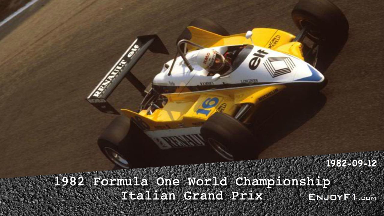 The 1982 Italian Grand Prix was a Formula One motor race held at Monza on 12 September 1982. This was the final pole position, podium, finish, and points for 1978 World Champion Mario Andretti at this race. René Arnoux won the race. Arnoux announced he would be replacing Andretti at Ferrari in 1983. Arnoux finished ahead of Ferrari driver Patrick Tambay, and Mario Andretti in the second Ferrari finished third. John Watson's fourth place put him 9 points behind Keke Rosberg (who finished outside the points after his rear wing came off and he had to pit in order for his team to replace it) with an outside chance of winning the Drivers' Title at the final race at Caesars Palace, where Ferrari, McLaren, and Renault would battle for the Constructors' Title. Both Brabham cars ran strongly early on but dropped out after several laps due to mechanical failures, a problem that would often compromise their otherwise fast package in 1982.