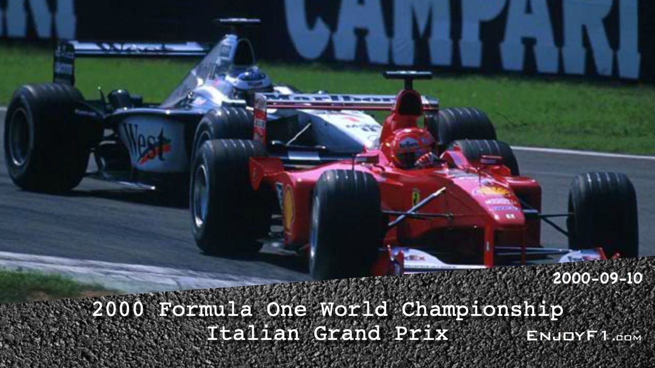 The 2000 Italian Grand Prix was a Formula One motor race held on 10 September 2000, at the Autodromo Nazionale di Monza near Monza, Lombardy. It was the 14th round of the 2000 Formula One World Championship. Ferrari's Michael Schumacher won the race from pole position. McLaren's Mika Häkkinen took second and Williams' Ralf Schumacher was third.