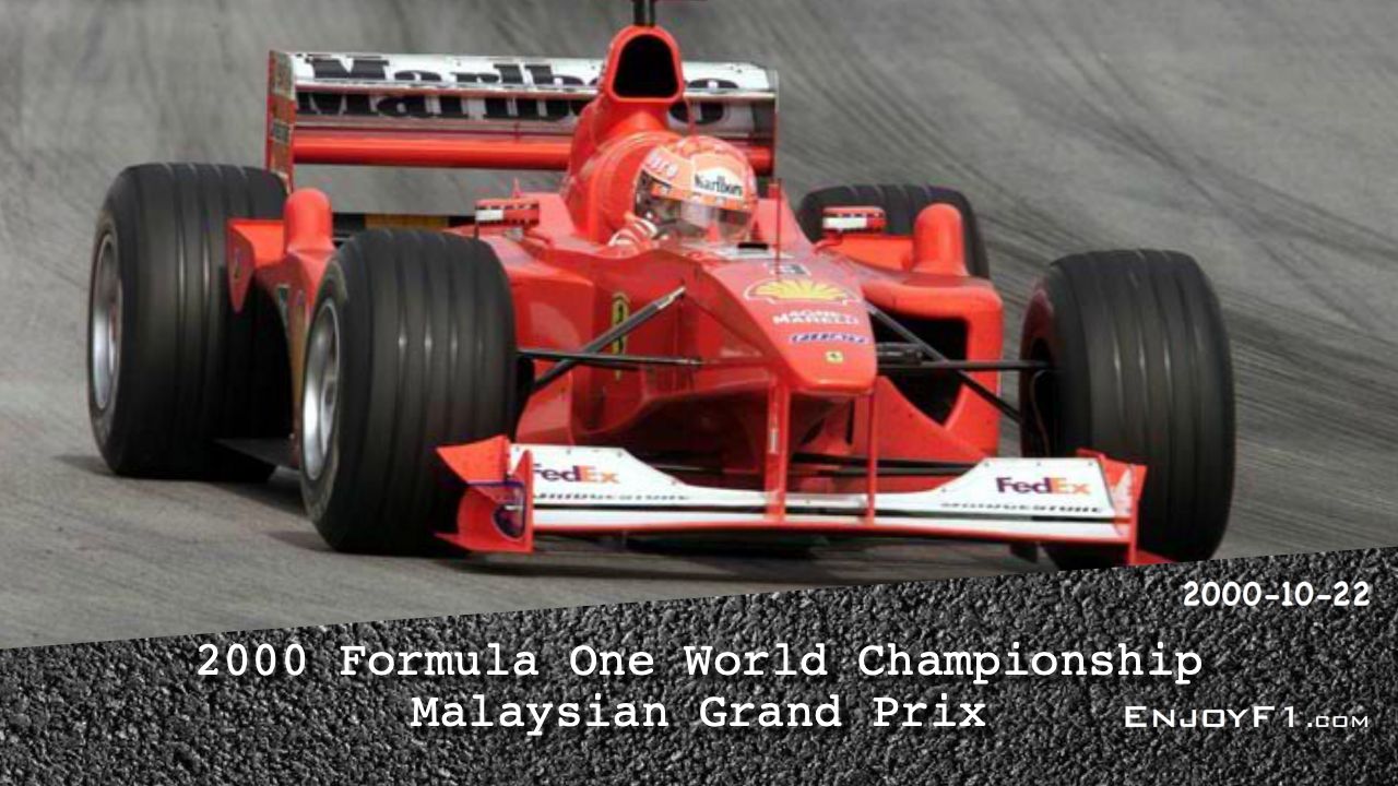 The 2000 Malaysian Grand Prix was a Formula One motor race held on 22 October 2000, at Sepang International Circuit in Sepang, Selangor. It was the 17th and final race of the 2000 Formula One World Championship. Ferrari's Michael Schumacher won the race from pole position. McLaren's David Coulthard finished second, with Michael Schumacher's teammate Rubens Barrichello finishing third.