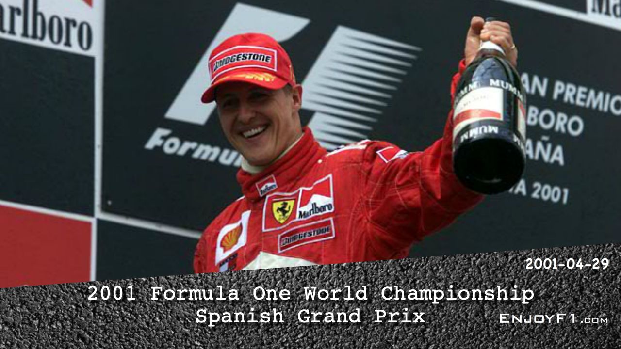 The 2001 Spanish Grand Prix was a Formula One motor race held on 29 April 2001, at the Circuit de Catalunya in Montmeló, Catalonia. It was the fifth round of the 2001 Formula One World Championship. Ferrari's Michael Schumacher won the race from pole position. Williams's Juan Pablo Montoya finished second for his first Formula One podium finish and British American Racing's Jacques Villeneuve finished third.