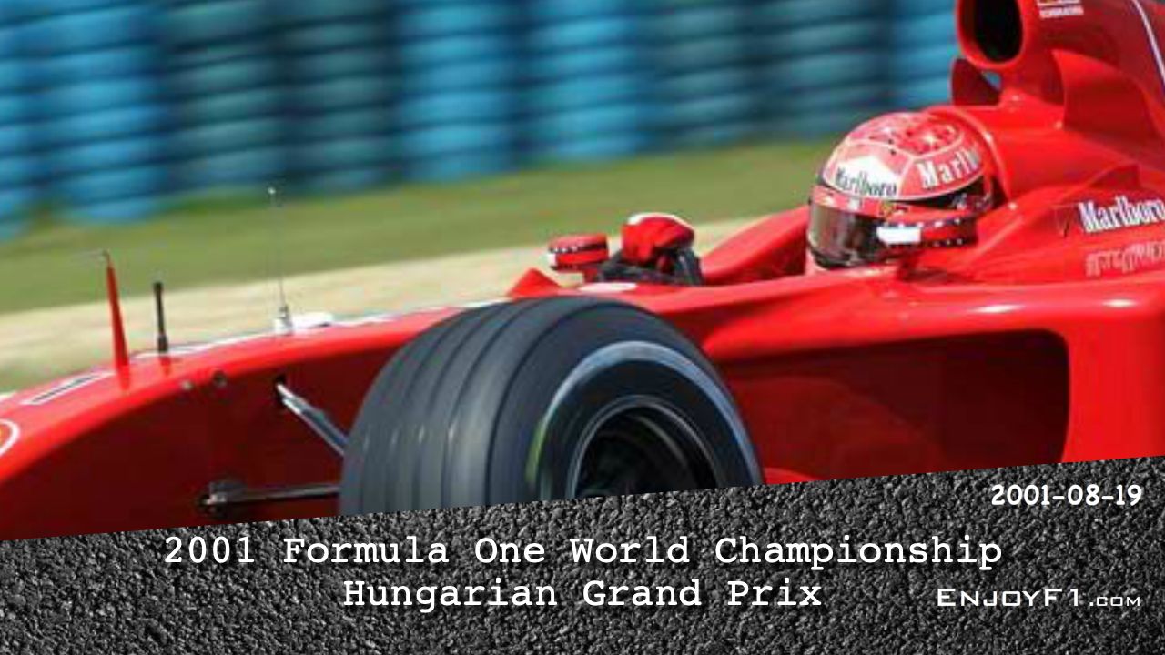 The 2001 Hungarian Grand Prix was a Formula One motor race held at the Hungaroring in Mogyoród, Pest on 19 August 2001. It was the 13th race of the 2001 Formula One World Championship. Ferrari driver Michael Schumacher won the race from pole position. His teammate Rubens Barrichello finished second and David Coulthard was third for McLaren.