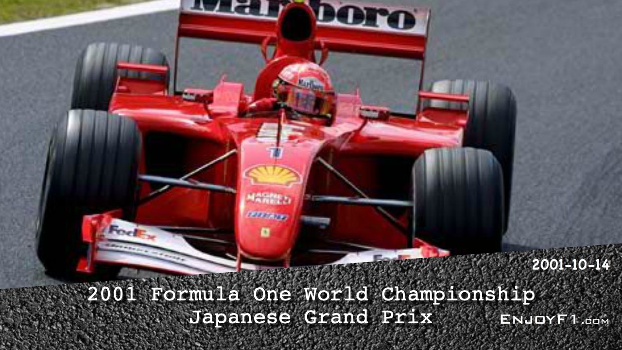 The 2001 Japanese Grand Prix was a Formula One motor race held on 14 October 2001, at the Suzuka Circuit in Suzuka, Mie. It was the 17th and final round of the 2001 Formula One World Championship. Ferrari's Michael Schumacher won the race from pole position. Williams driver Juan Pablo Montoya finished in second and McLaren's David Coulthard was third.