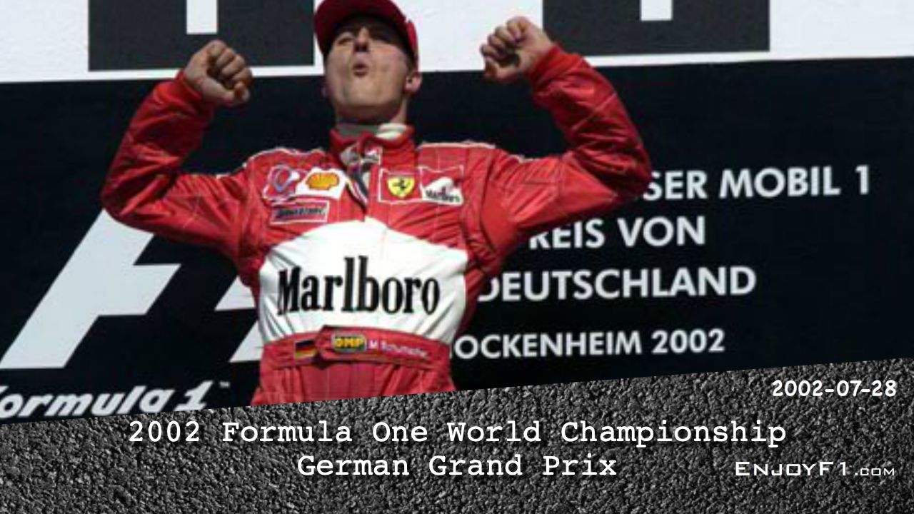 The 2002 German Grand Prix was a Formula One motor race held at the Hockenheimring, Hockenheim, Baden-Württemberg on 28 July 2002. It was the 12th round in the 2002 Formula One World Championship and the second Grand Prix to be held in Germany that year. Ferrari driver Michael Schumacher won the race from pole position. The Williams duo of Juan Pablo Montoya and Ralf Schumacher finished second and third, respectively.
