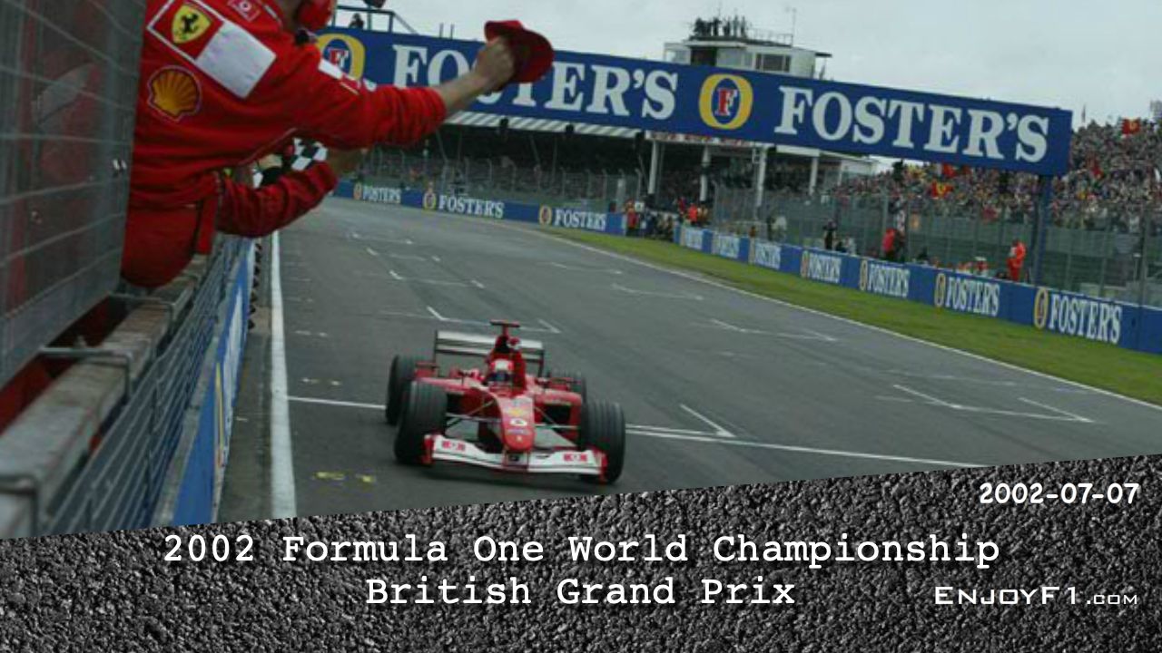 The 2002 British Grand Prix was a Formula One motor race held at the Silverstone Circuit, England on 7 July 2002. It was the 10th round in the 2002 Formula One World Championship. Ferrari's Michael Schumacher won the race after starting from second position. His teammate Rubens Barrichello finished in second and Williams driver Juan Pablo Montoya was third.