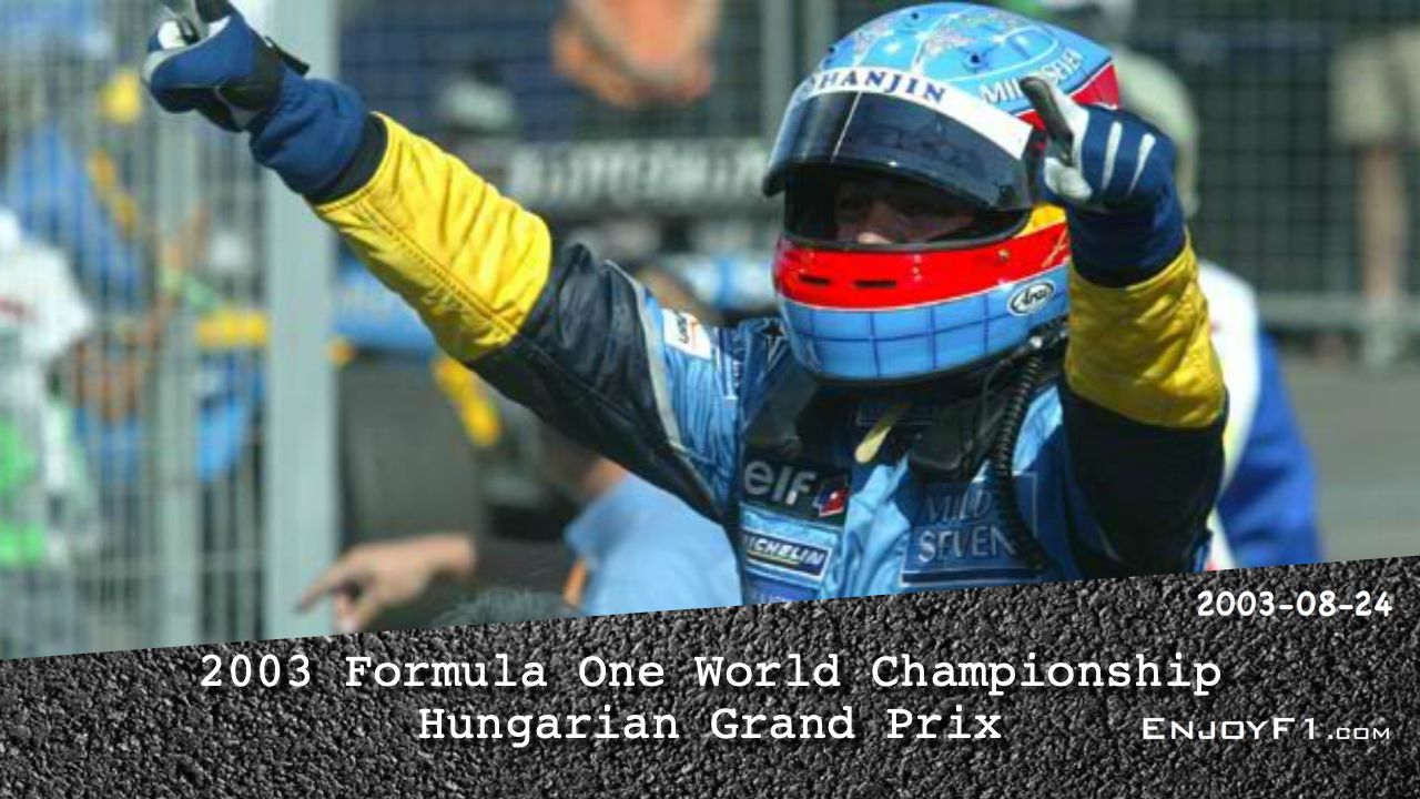 The 2003 Hungarian Grand Prix was a Formula One motor race held on 24 August 2003 at the Hungaroring, Mogyoród, Pest. It was the thirteenth round of the 2003 Formula One season.